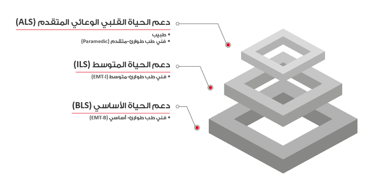 نحن في الإسعاف الوطني نضع احتياجات المرضى والعملاء على رأس أولوياتنا، ونستخدم أحدث التقنيات ومركبات الإسعاف المتطورة لتقديم خدمة موثوقة ذات جودة عالية. إذ تقدم فرقنا المتخصصة والمؤهلة من الأطباء والمسعفين المتقدمين وفنيي طب الطوارئ، مستويات مختلفة من الرعاية الطارئة لمرحلة ما قبل المستشفى، بدءً من دعم الحياة الأساسي (BLS) وصولاً إلى دعم الحياة المتقدم (ALS) وعبر مجموعة متنوعة من حلول وخدمات الرعاية الطارئة المصممة خصيصاً لتلبية احتياجات العملاء بما يتوافق مع اللوائح المحلية وأفضل الممارسات الدولية.