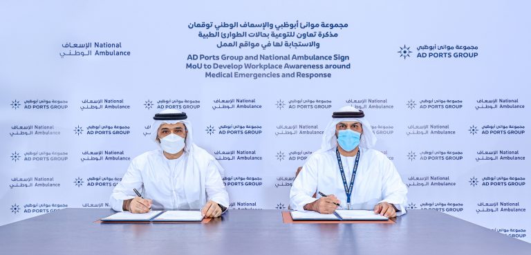 تعاون بين الإسعاف الوطني ومجموعة موانئ أبوظبي للتوعية بحالات الطوارئ الطبية والاستجابة لها في مواقع العمل