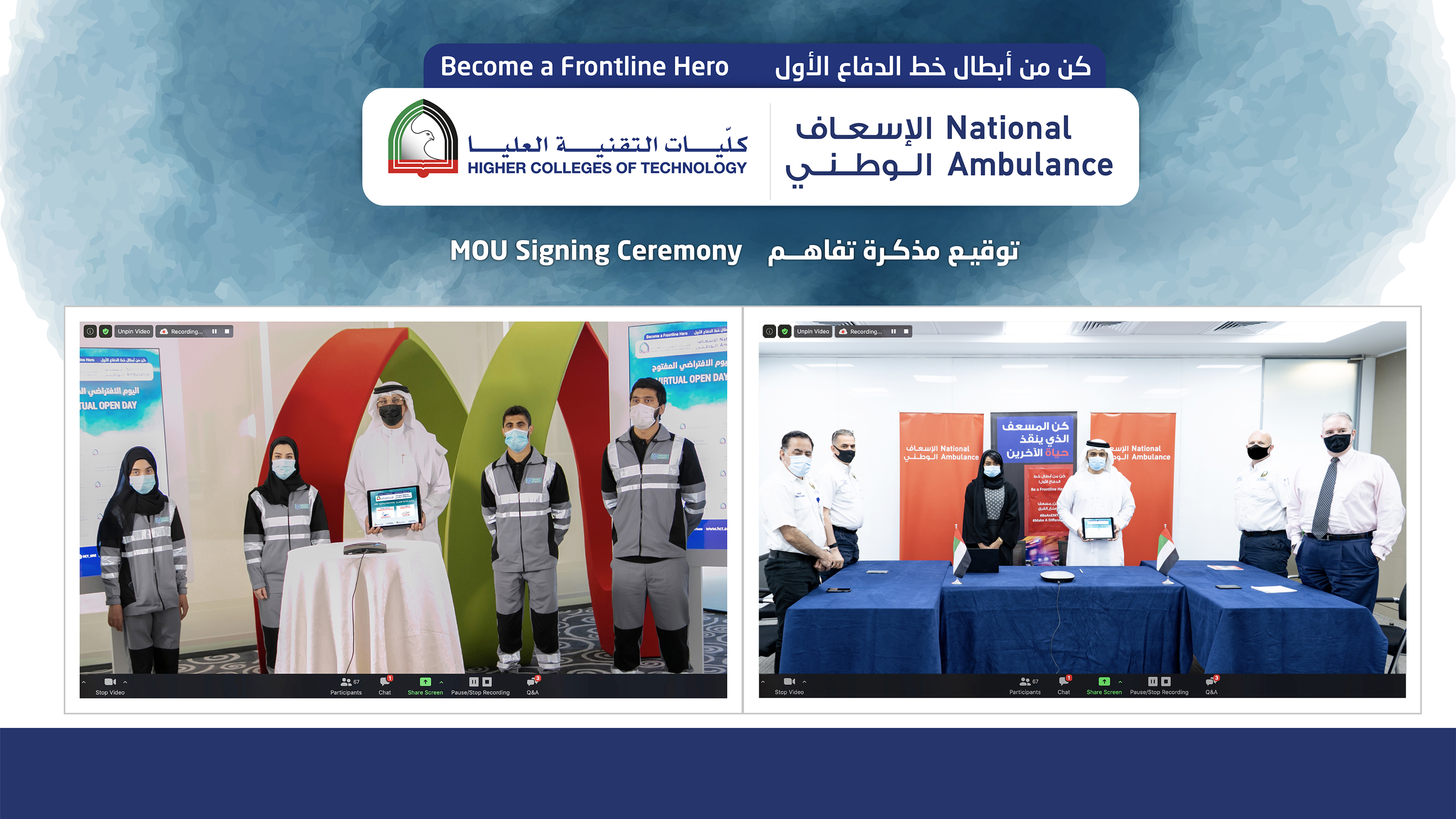 "الإسعاف الوطني" وكليات التقنية العليا" يتعاونان لإعداد وتدريب كوادر وطنية من فنيي طب الطوارئ ودعم توظفيهم