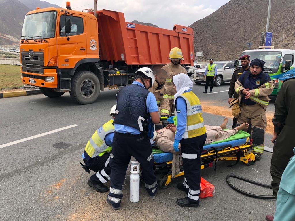 Joint Emergency Response as Two Injured in Car-Truck Crash in Khorfakkan